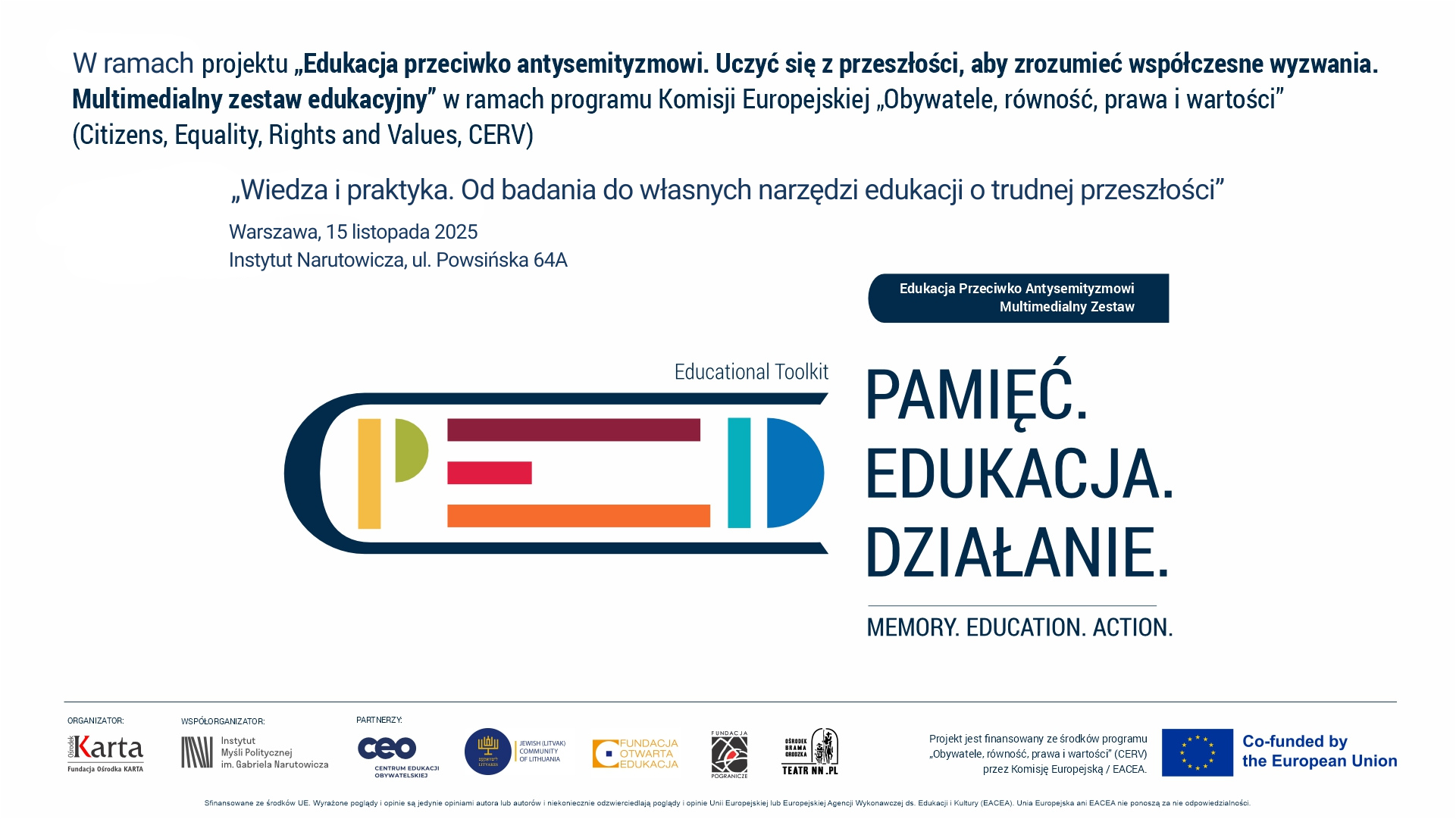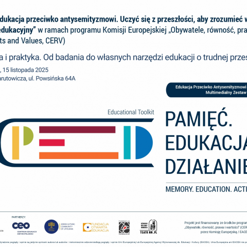 Wydarzenie realizowane jest w ramach projektu „Edukacja przeciwko antysemityzmowi. Uczyć się z przeszłości, aby zrozumieć współczesne wyzwania. Multimedialny zestaw edukacyjny”, dlatego skoncentrowane na przykładowych materiałach edukacyjnych, które w docelowej wersji zostaną opublikowane w pierwszej połowie 2026. Wydarzenie współprowadzi Centrum Edukacji Obywatelskiej.